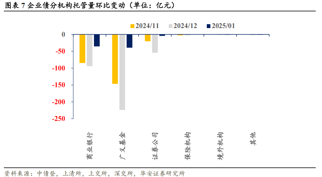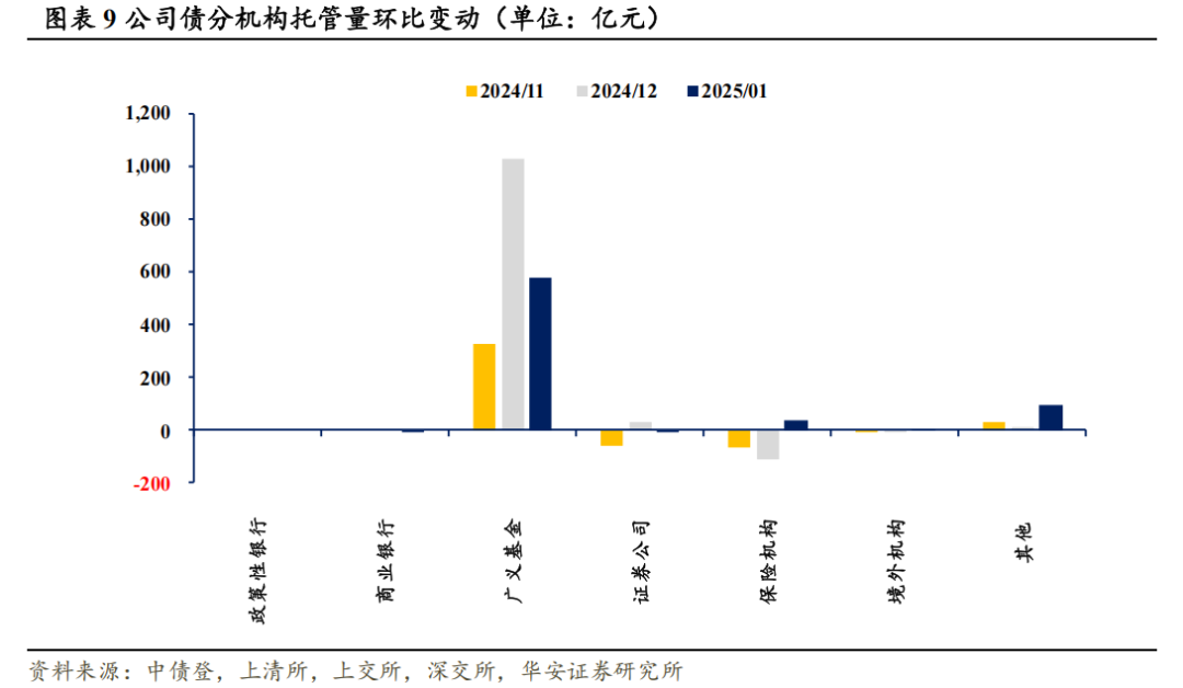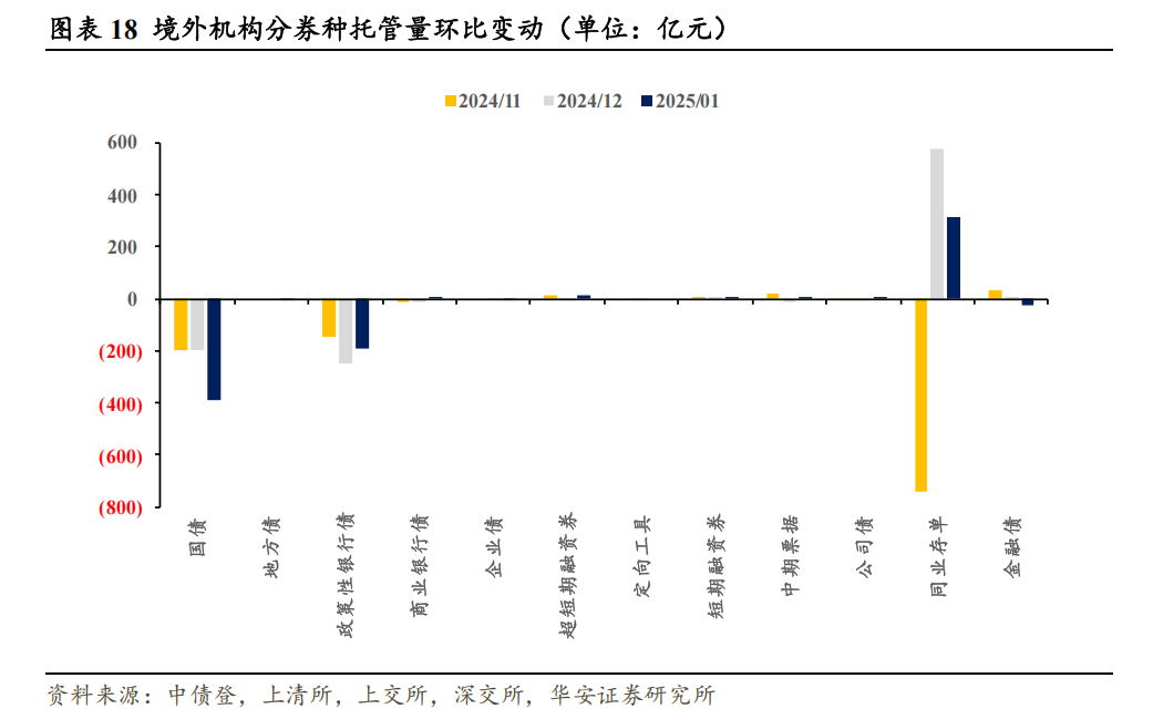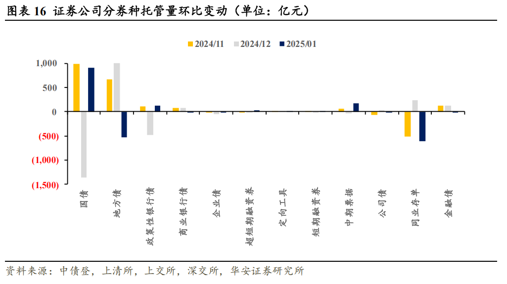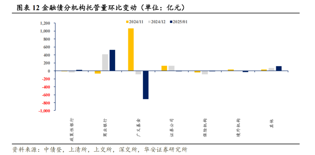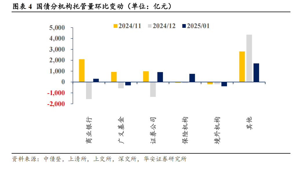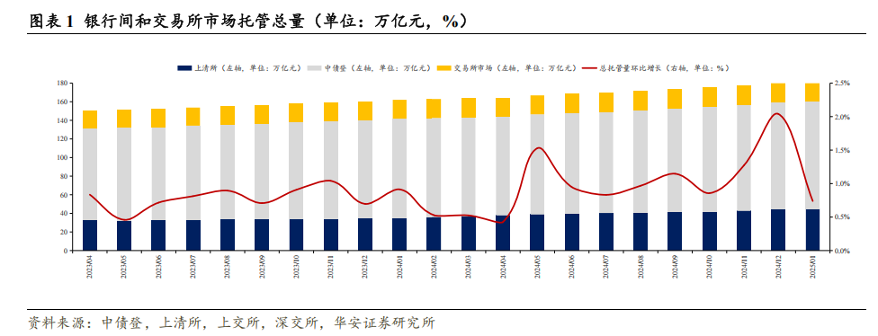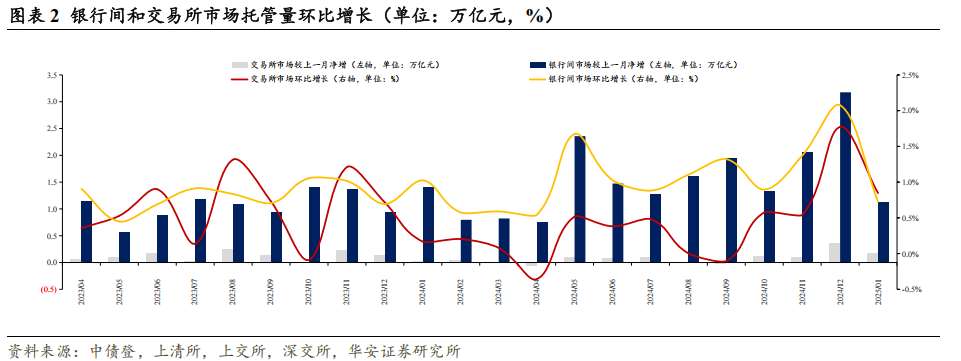 本文内容节选自华安证券研究所已发布报告:《保险机构配债策略出现新变化——1月交易所及银行间托管数据点评》(发布时间:20250220),具体分析内容请详见报告。若因对报告的摘编等产生歧义,应以报告发布当日的完整内容为准。