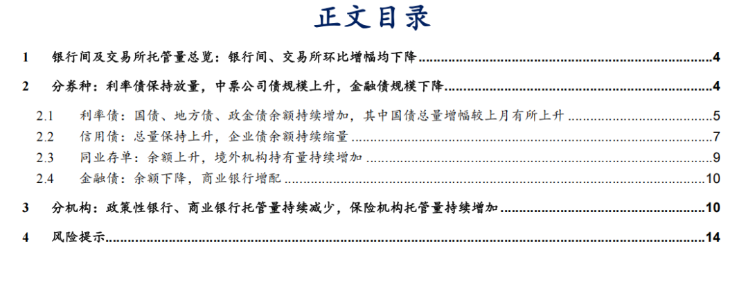 ⚫ 金融债方面,托管量减少4.1亿元。